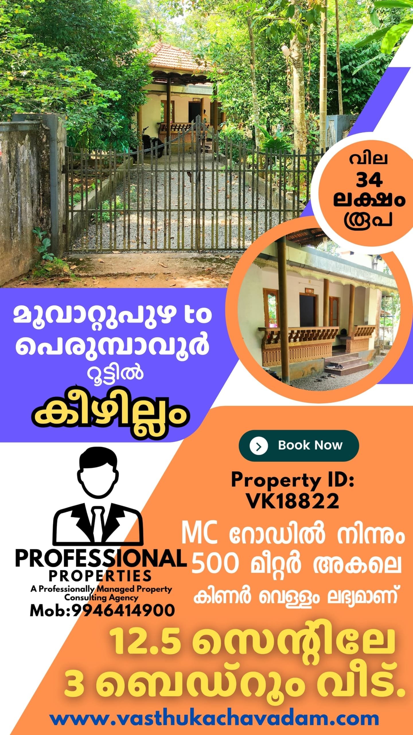 മൂവാറ്റുപുഴ – പെരുമ്പാവൂർ – കീഴിലം -12.5 സെൻ്റ് -1400 SQFT – വീട് വിൽപ്പനയ്ക്ക്. 3 BEDROOM, 2 ബാത്രൂം , 1 അറ്റാച്ചഡ്, പ്ലോട്ടിൽ ജാതിക്ക,അടക്ക,കുരുമുളക്. വറ്റാത്ത കിണർ, പഞ്ചായത്ത് പൈപ്പ് കണക്ഷൻ